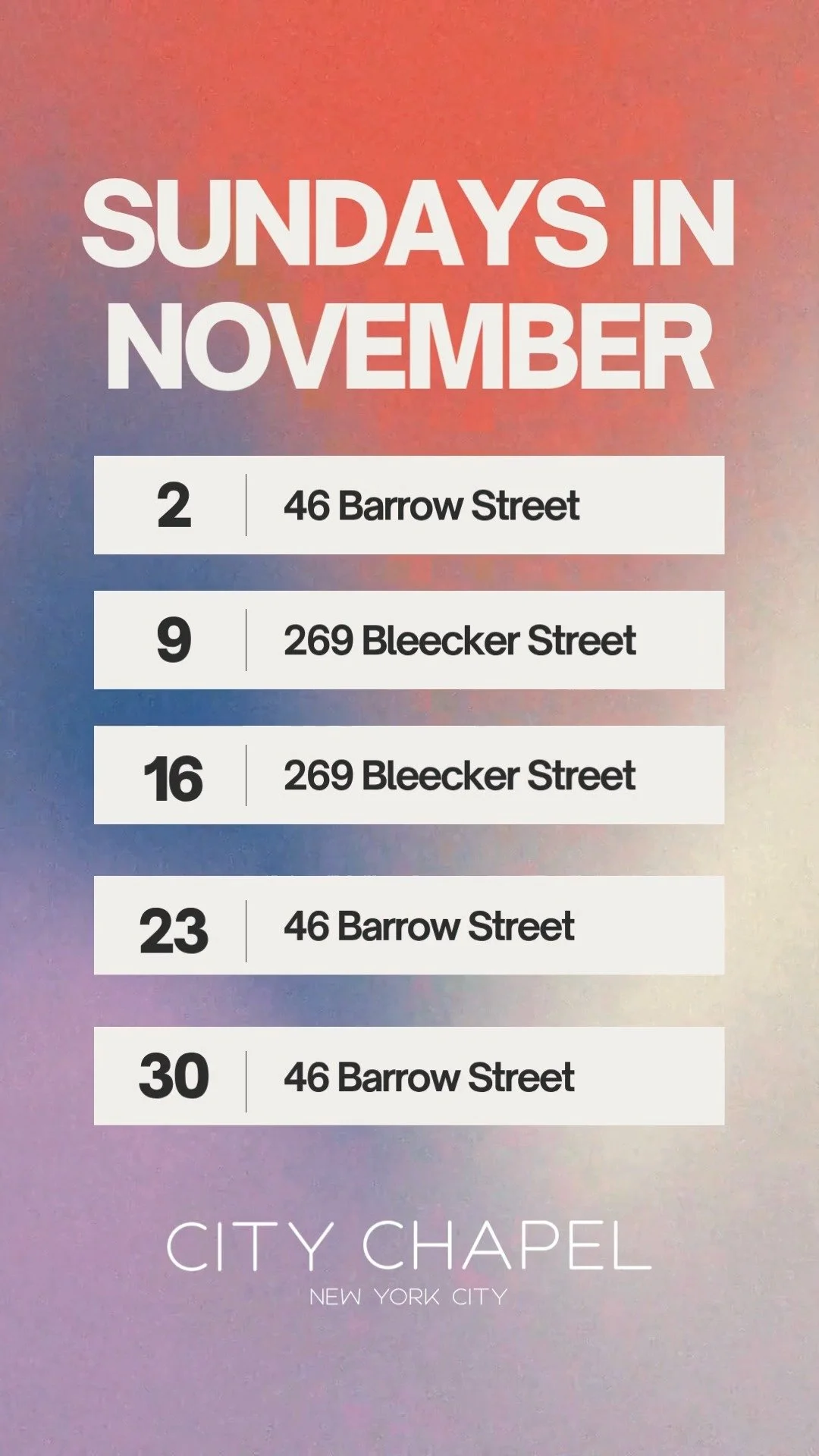 A new church community for New York City and North Jersey.